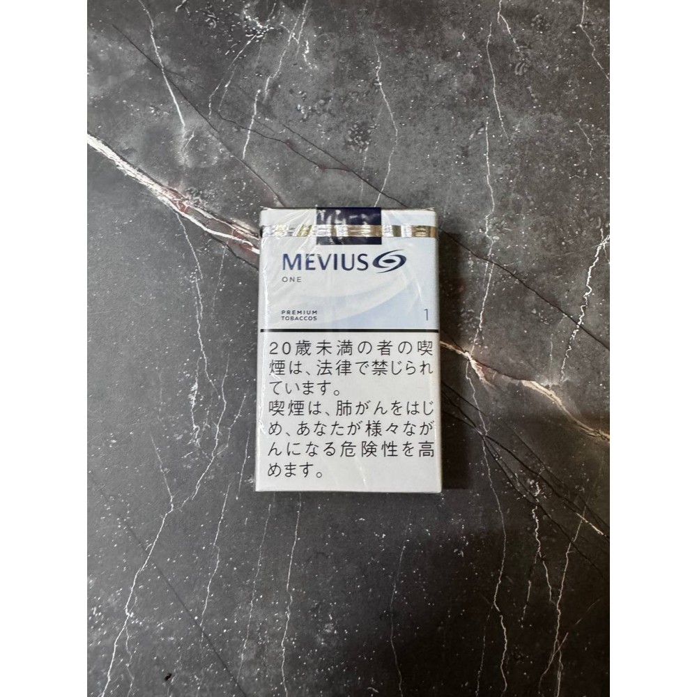 MEVIUS — №1 бренд на японском рынке JT. Переименован из Mild Seven в 2013 году. Версия ONE соответствует ультранизким показателям смол/никотина по ISO; значения продублированы на боковой стороне пачки (タール1mg / ニコチン0.1mg). Детали (код фабрики, дата) зависят от партии.
