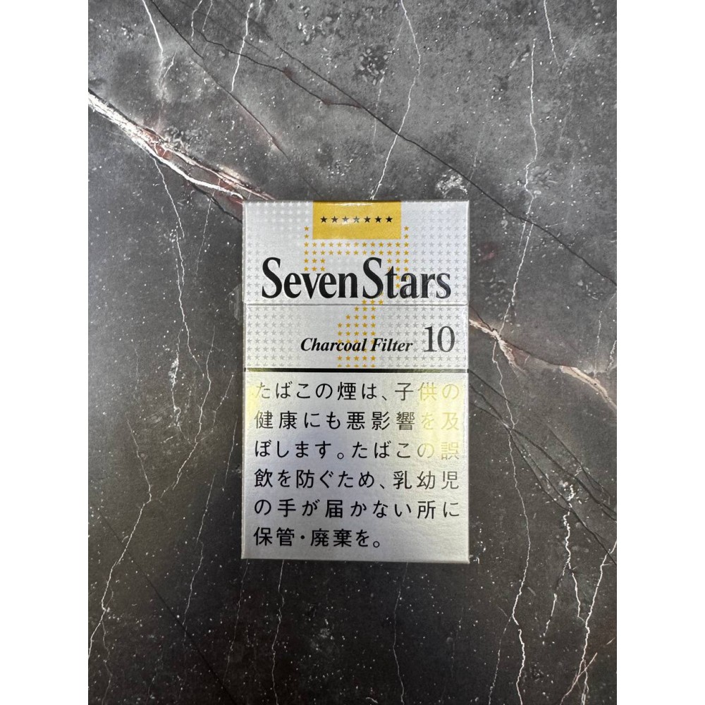 Seven Stars Charcoal Filter 10 — классическая японская линейка от Japan Tobacco (JT) с активированным угольным фильтром. Формула сочетает насыщенный табачный вкус и мягкую тягу; в версии “10” заявлено 10 мг смолы и около 0.8–0.9 мг никотина. Бренд Seven Stars — культовая марка Японии с 1969 года.