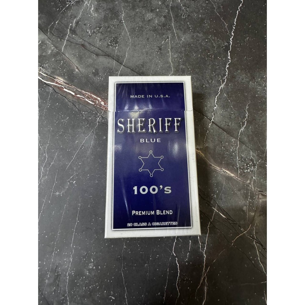 Sheriff Blue 100s — американские сигареты с внутреннего рынка США в «синем» профиле: мягче, чем Red/Full Flavor, без ментола и без капсулы. Формат 100s дарит более длинную, ровную и «прохладную» сессию с спокойной тягой и чистым табачным фоном American Blend.